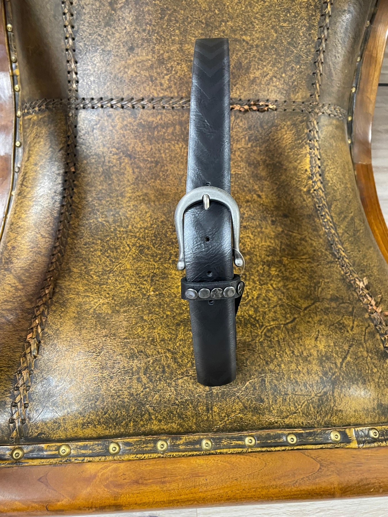 Destaca su hebilla metálica plateada con detalles decorativos que aportan carácter y un toque moderno, ideal para complementar tanto looks casuales como más sofisticados.