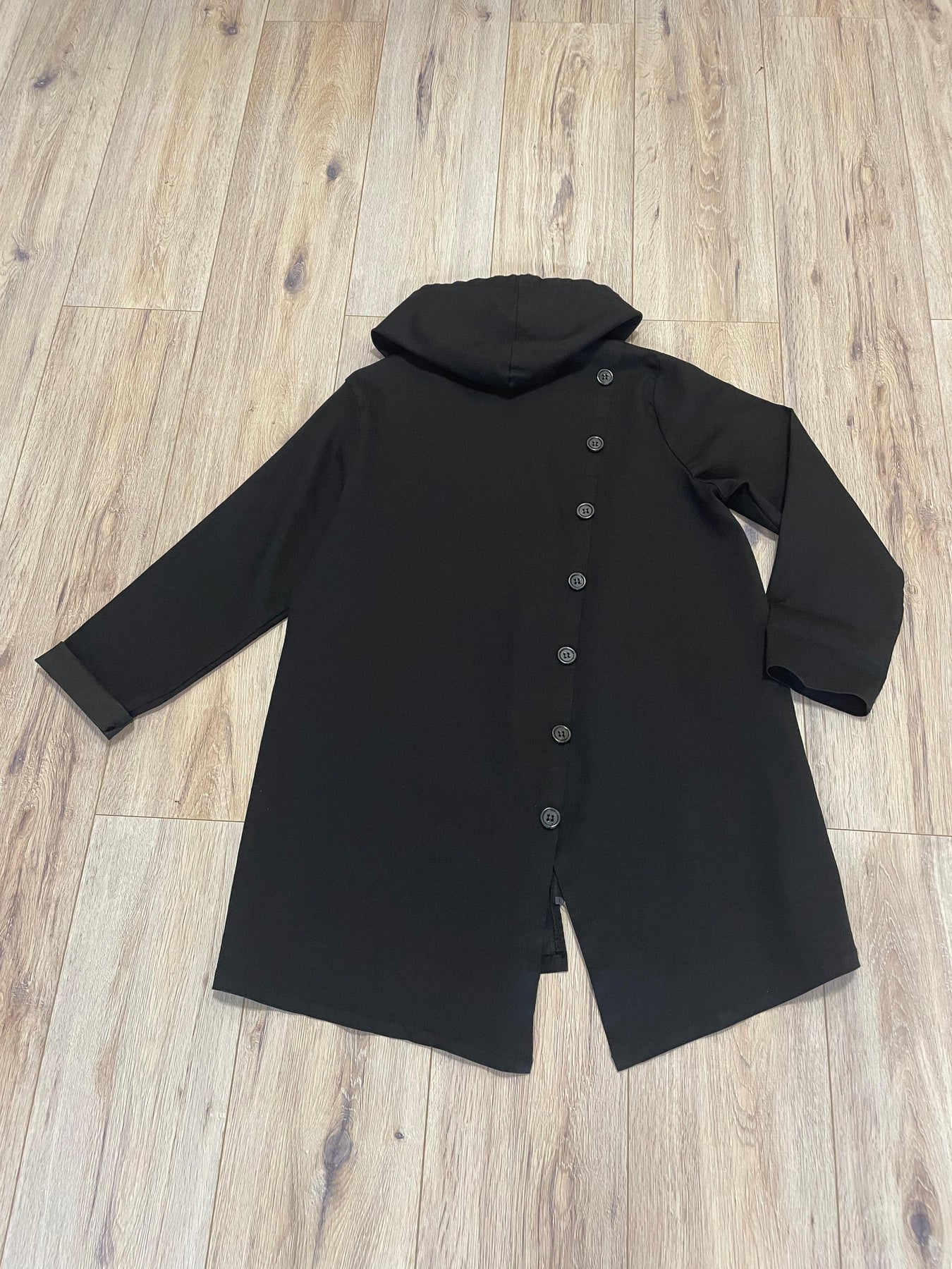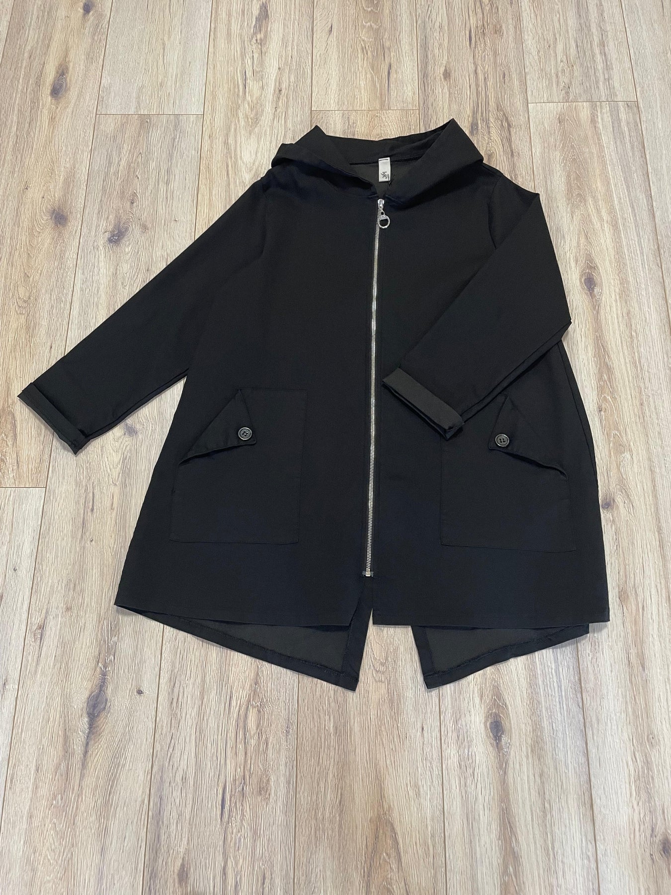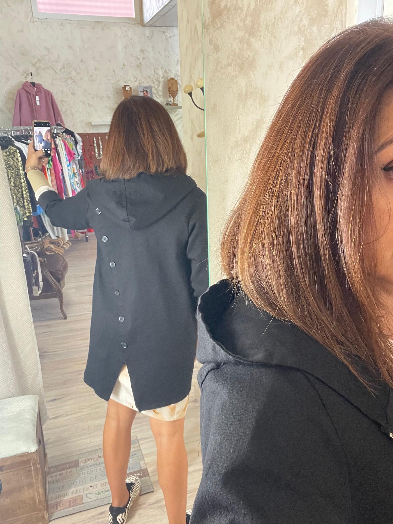 Un abrigo moderno, funcional y con mucho estilo. Este diseño de corte tres cuartos destaca por su tejido fluido con cuerpo, ideal para entretiempo o días frescos. Su cremallera plateada frontal aporta un toque contemporáneo, mientras que los botones decorativos en la espalda lo hacen único y diferente.