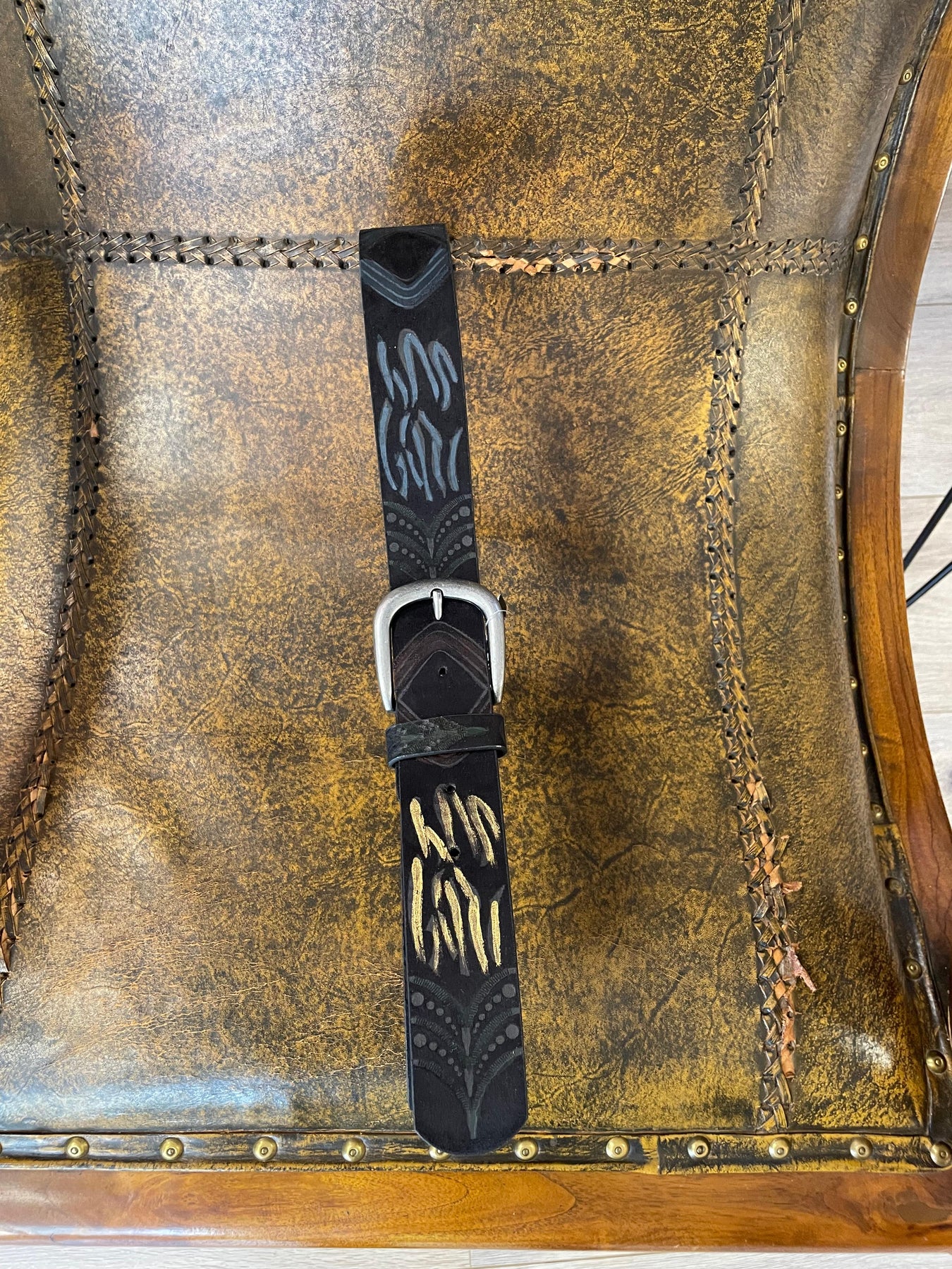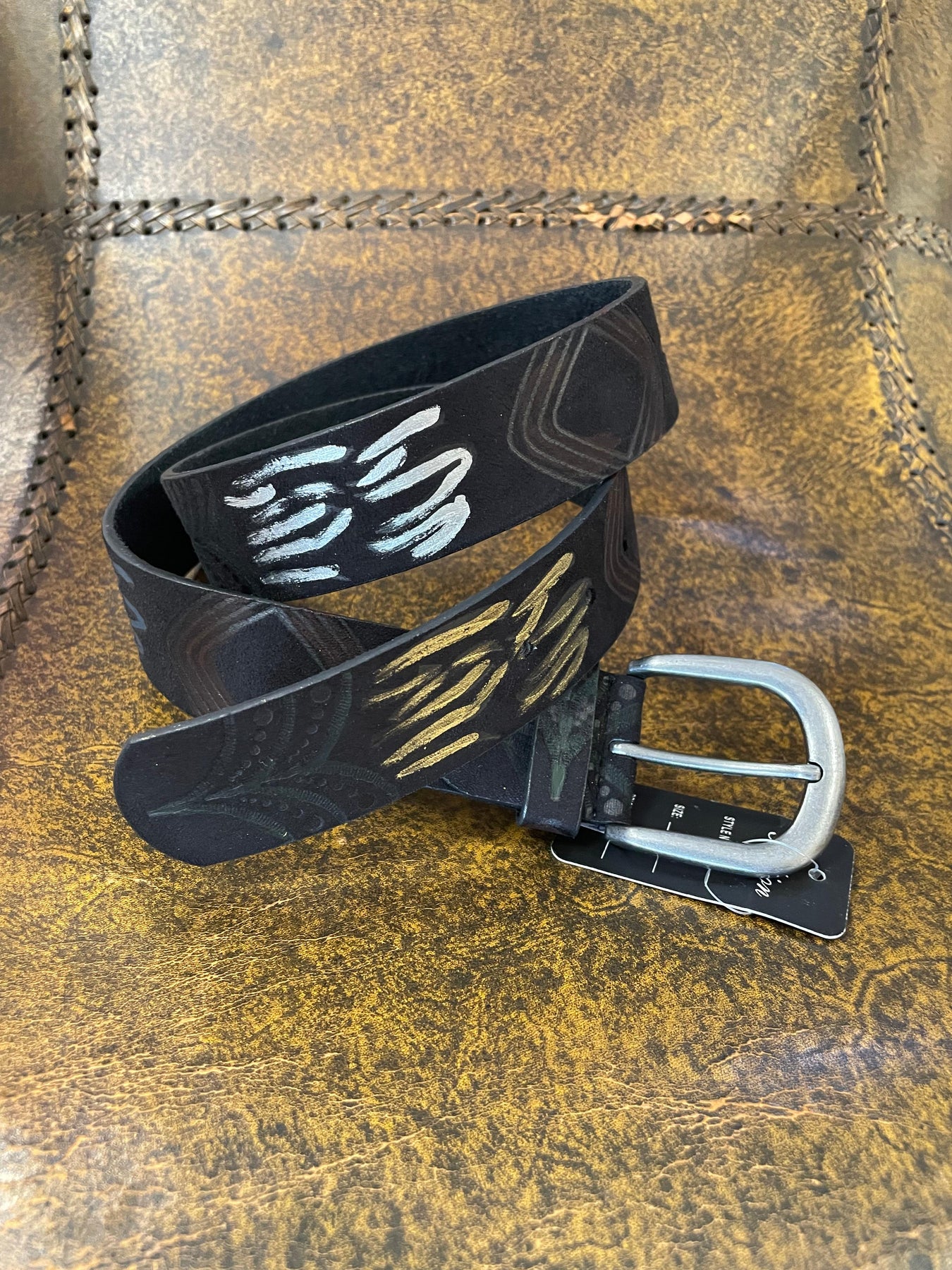 🎨 Cinturón Brochazos Plata, Negro, Blanco y Oro