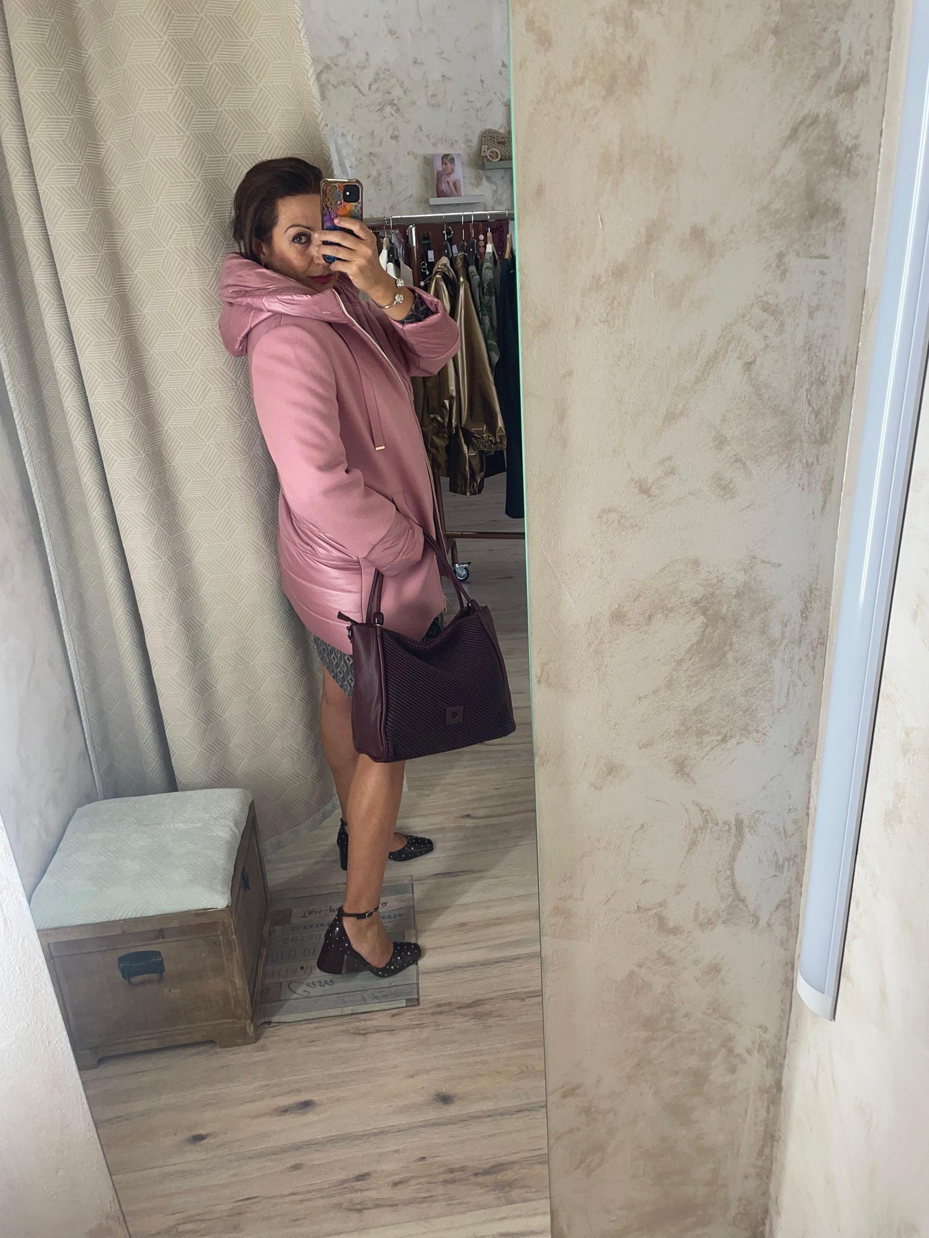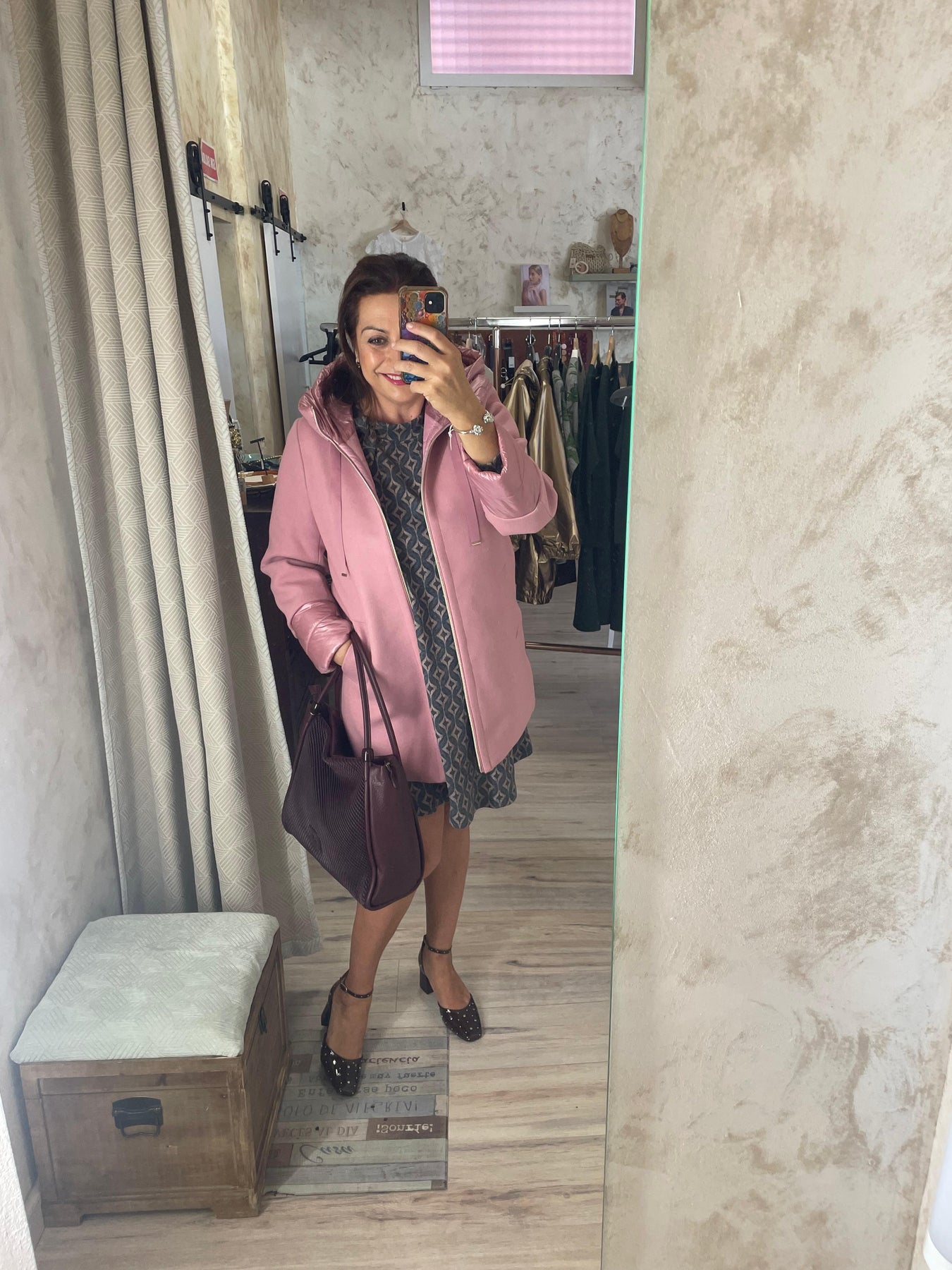 Combínalo con tonos neutros o beige para un look armonioso y delicado. Si prefieres un contraste elegante, añade bolso y botines en tonos vino o chocolate.