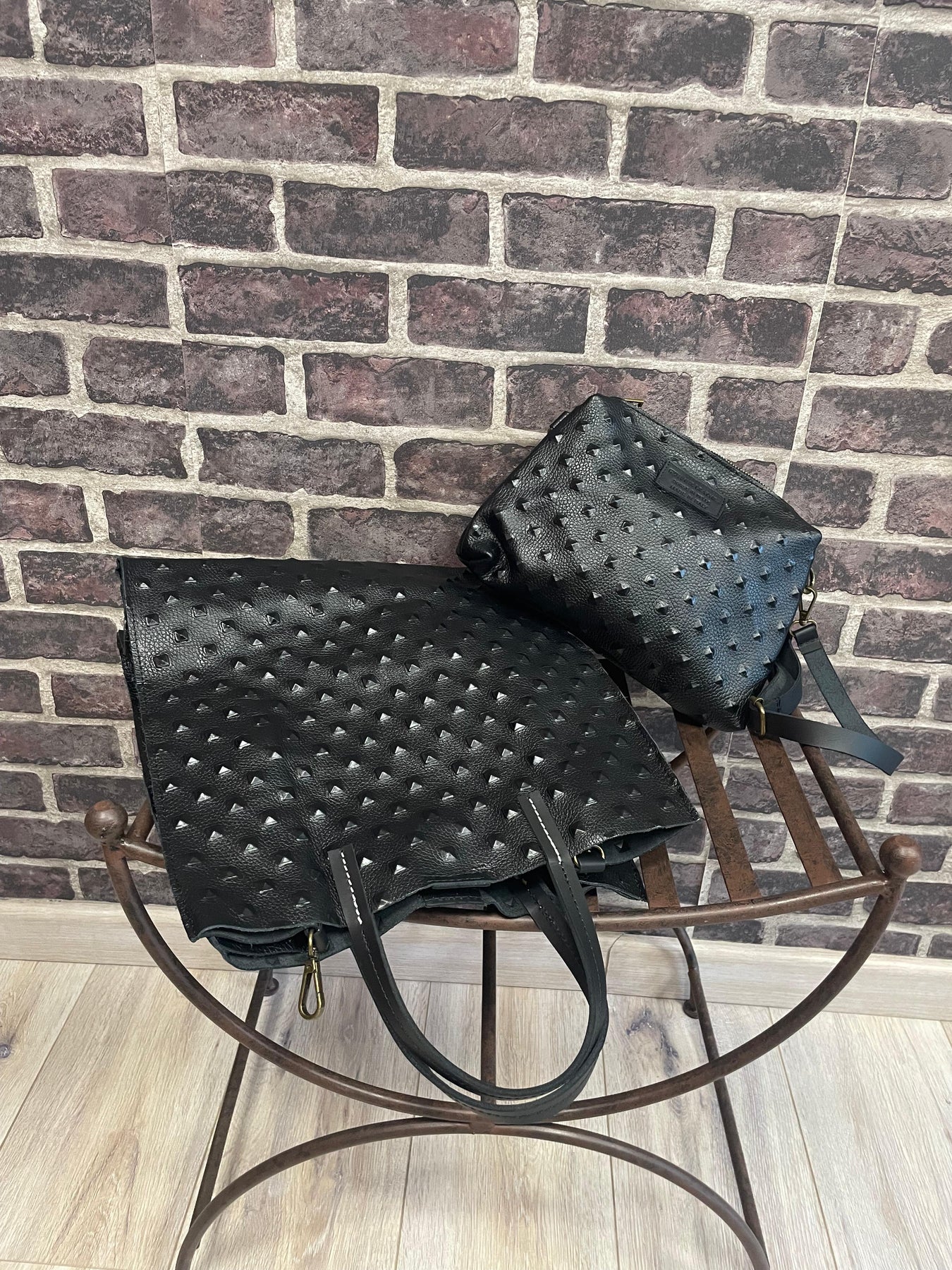 Bolso de piel blanda con un elegante diseño en relieve geométrico que le aporta textura y estilo.