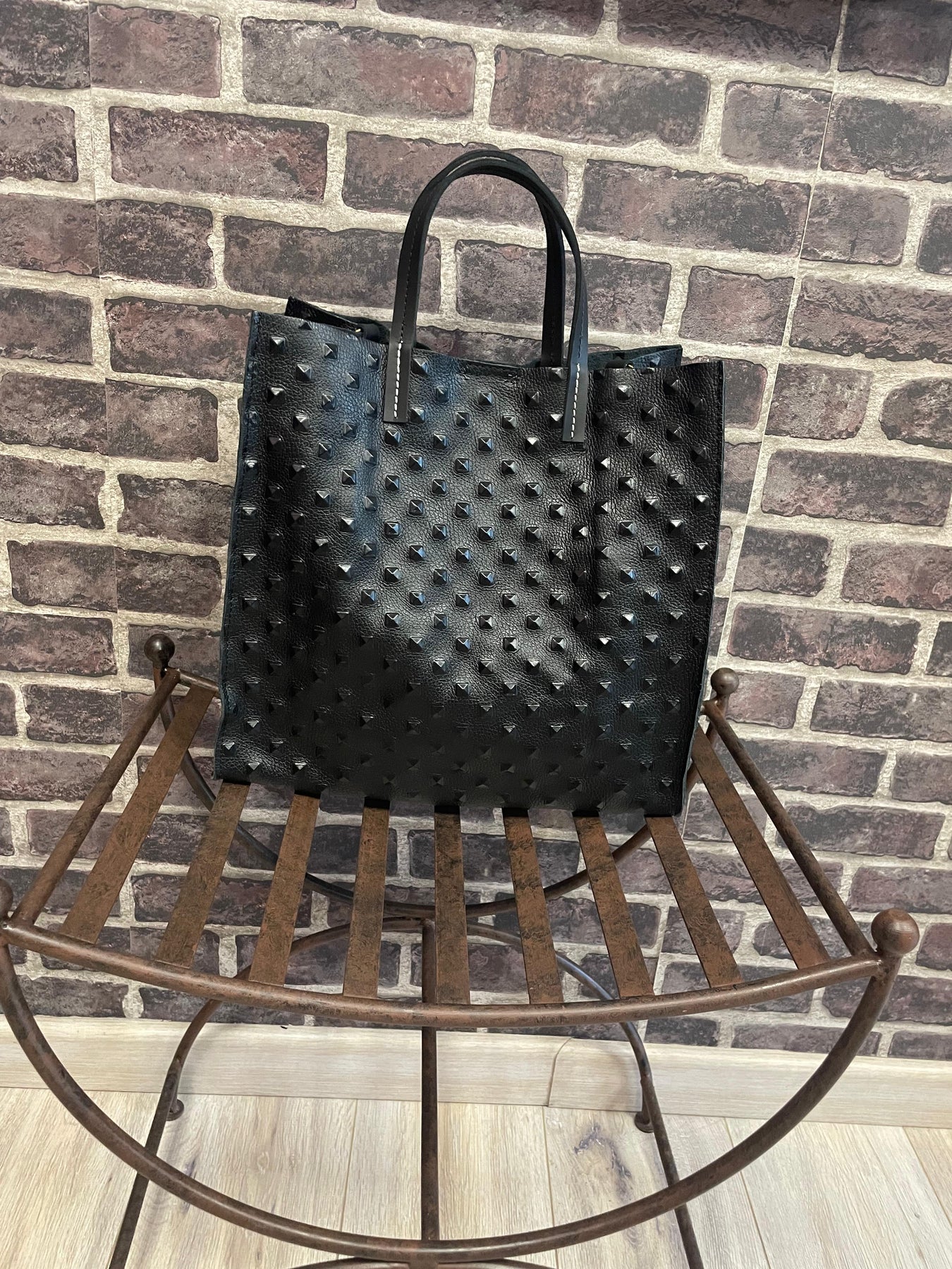 Cierre con botón de presión y asas cortas firmes, perfecto para llevar al hombro o en la mano.