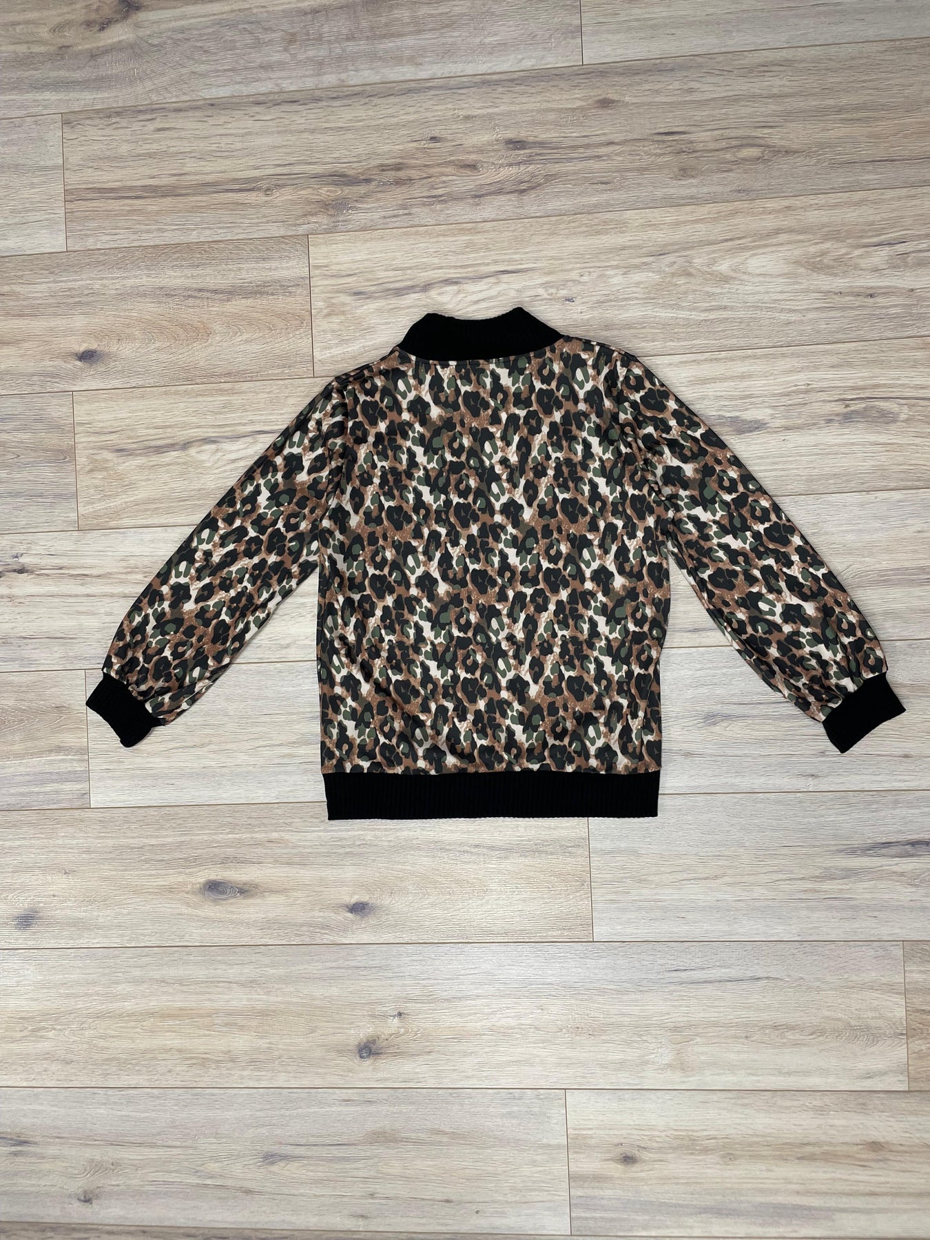 Jersey de tejidos combinados con estampado animal print en tonos verdes, caqui y crudo.