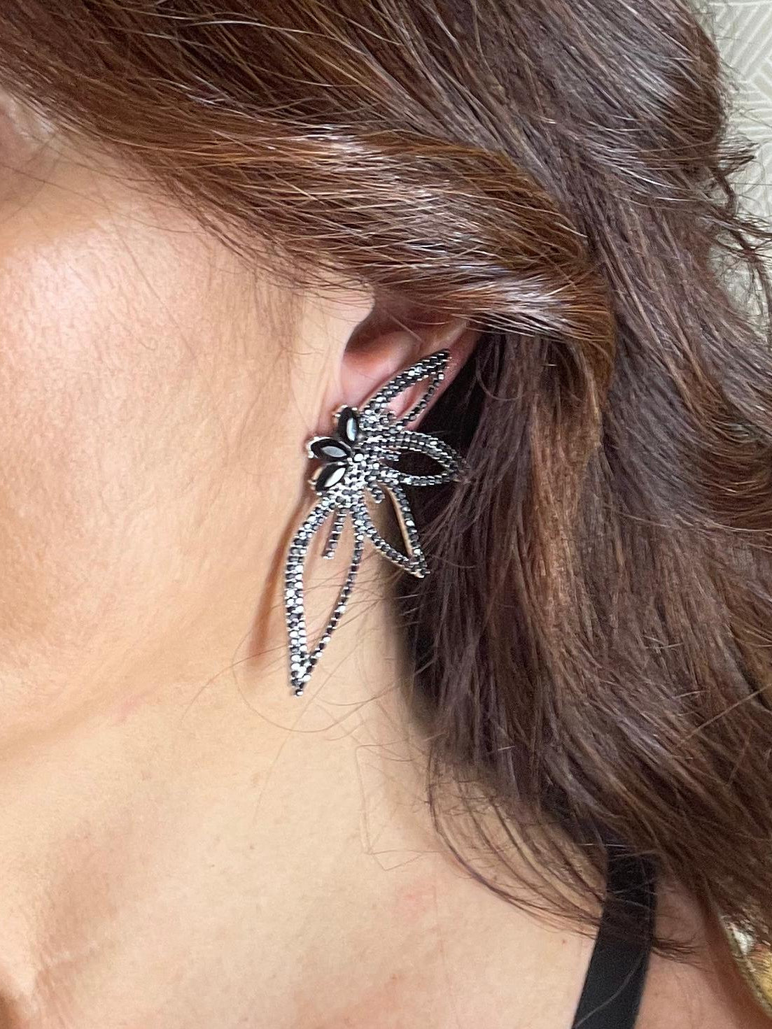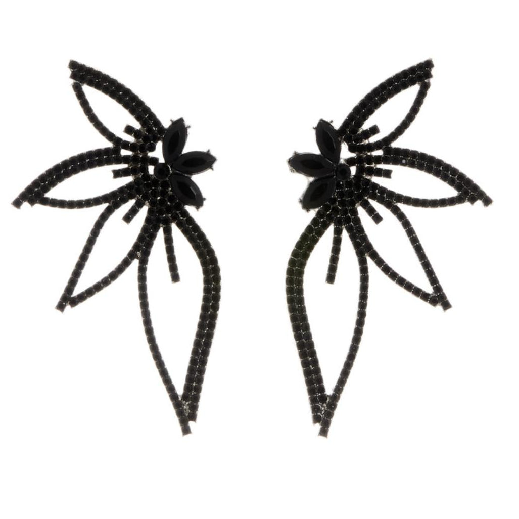 Pendientes de diseño floral con strass negro, creados para destacar con fuerza y elegancia.