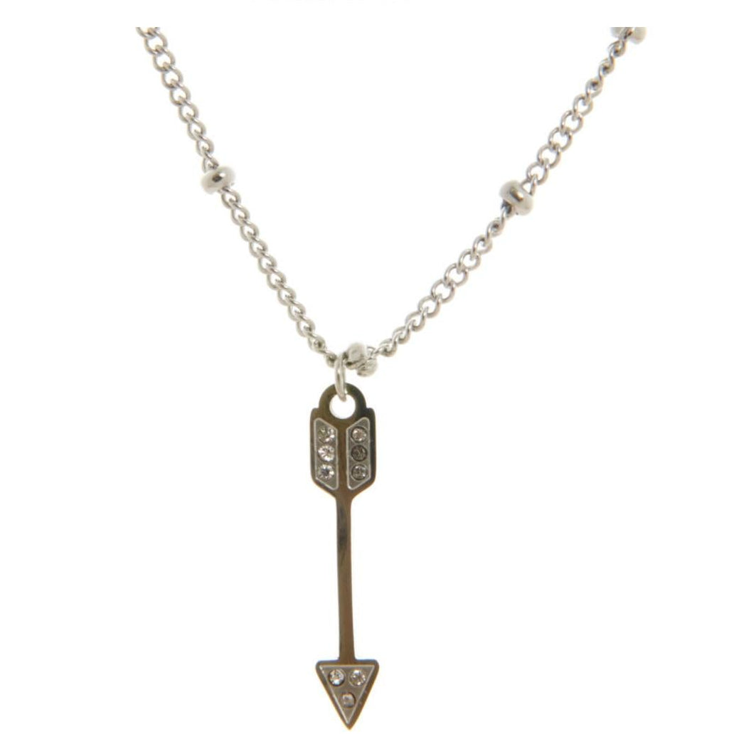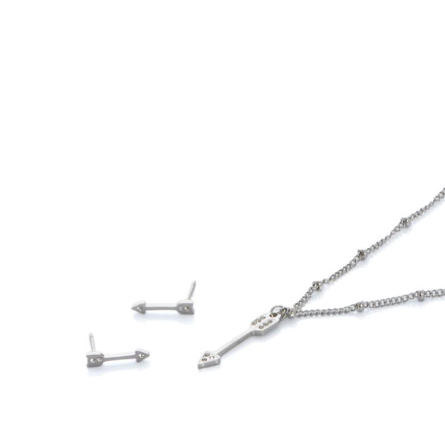 Set de colgante y pendientes a juego en acero plateado con diseño de flecha decorada con circonitas.